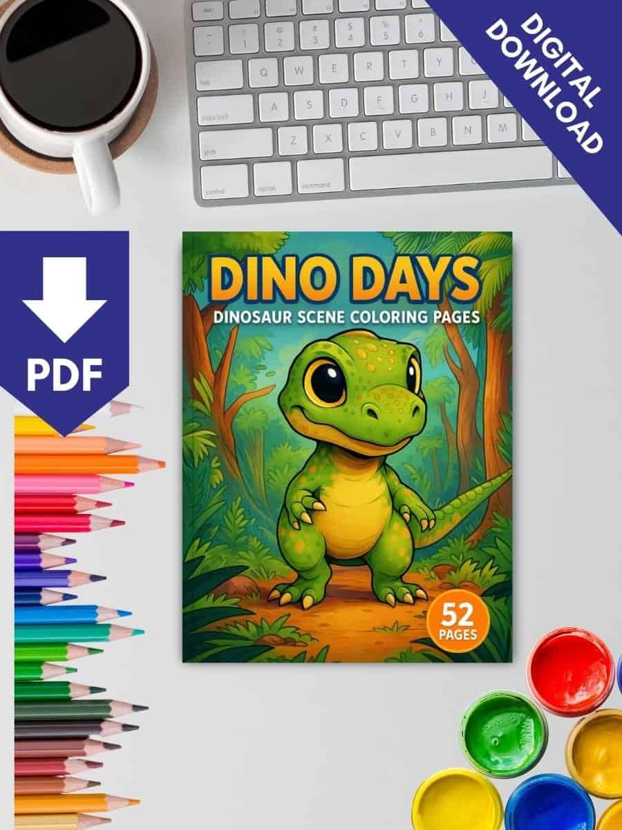 "Dino Days – 52 Dinosaur Scene Coloring Pages" - Product Details