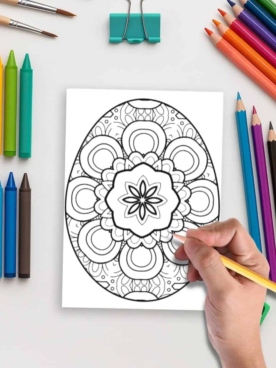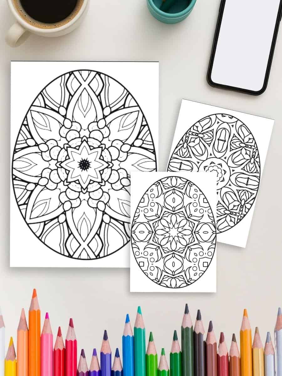 Each page features an Easter egg filled with intricate mandala designs — a unique blend of holiday tradition and artistic focus.