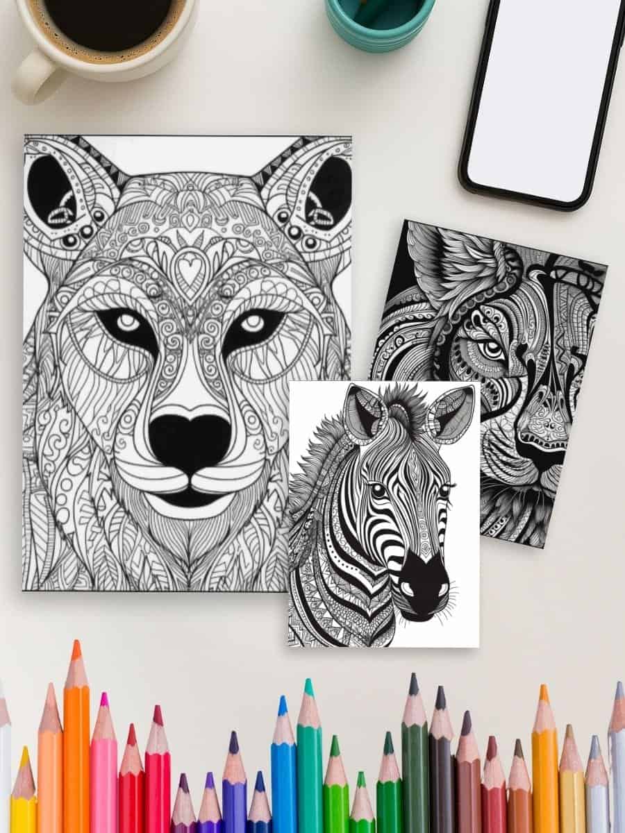 This set blends symbolic animals with calming mandala details for soulful coloring.