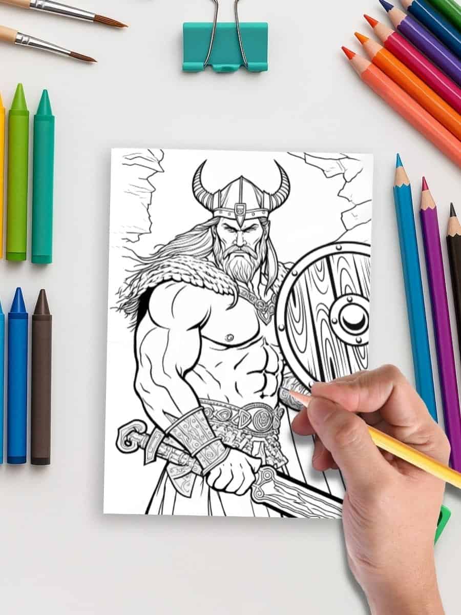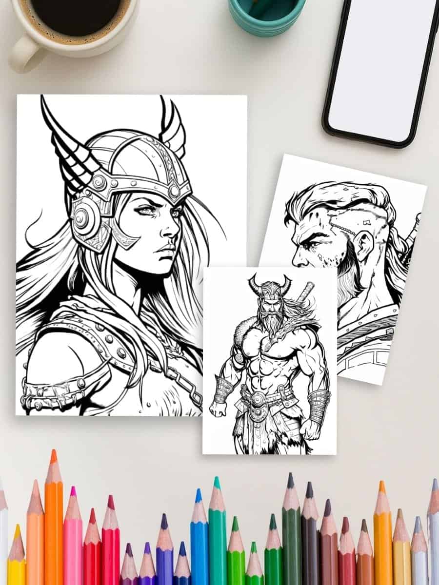 17 bold and mythic Viking pages with warriors, symbols, and ancient Norse themes.