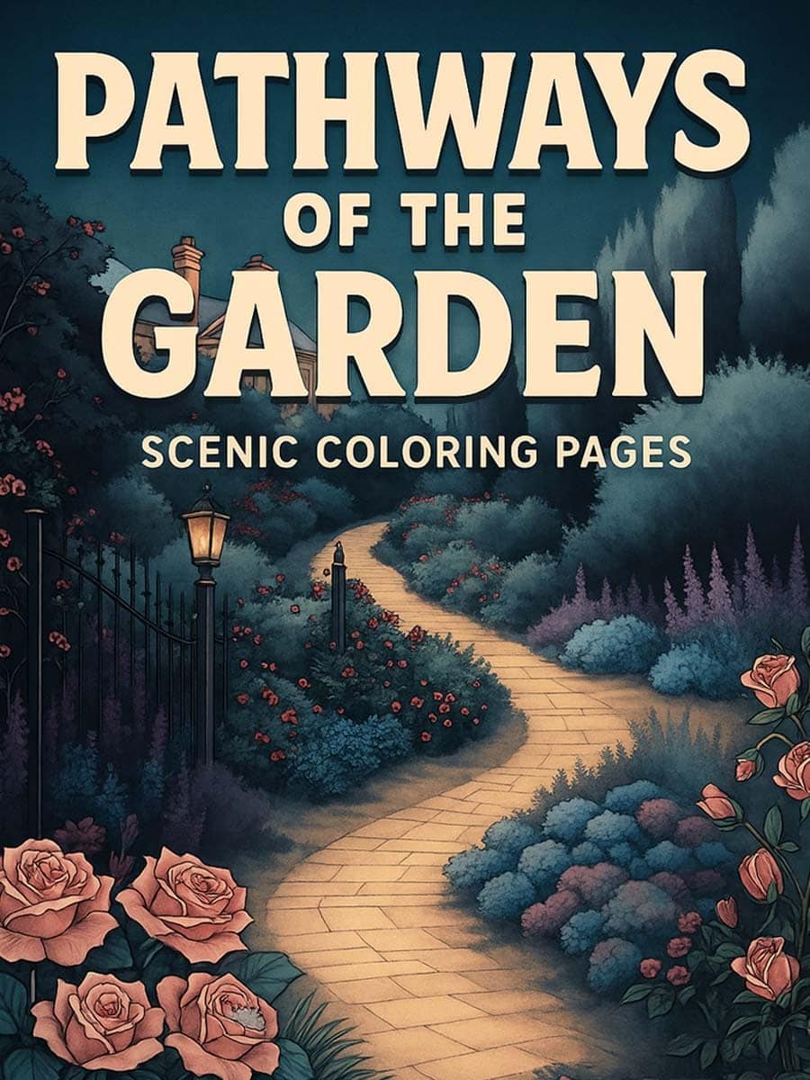 "Pathways of the Garden – 25 Scenic Coloring Pages" - Product Details