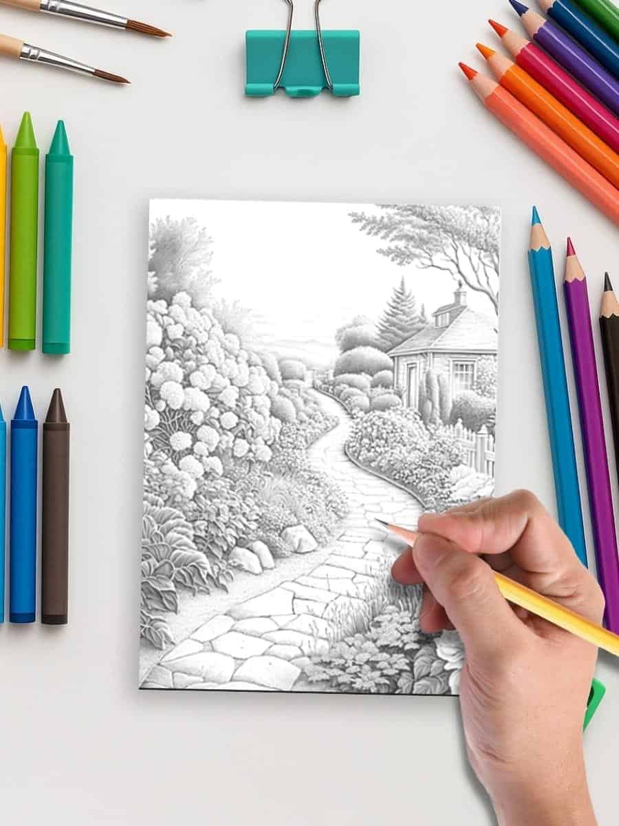Pathways of the Garden – 25 Scenic Coloring Pages