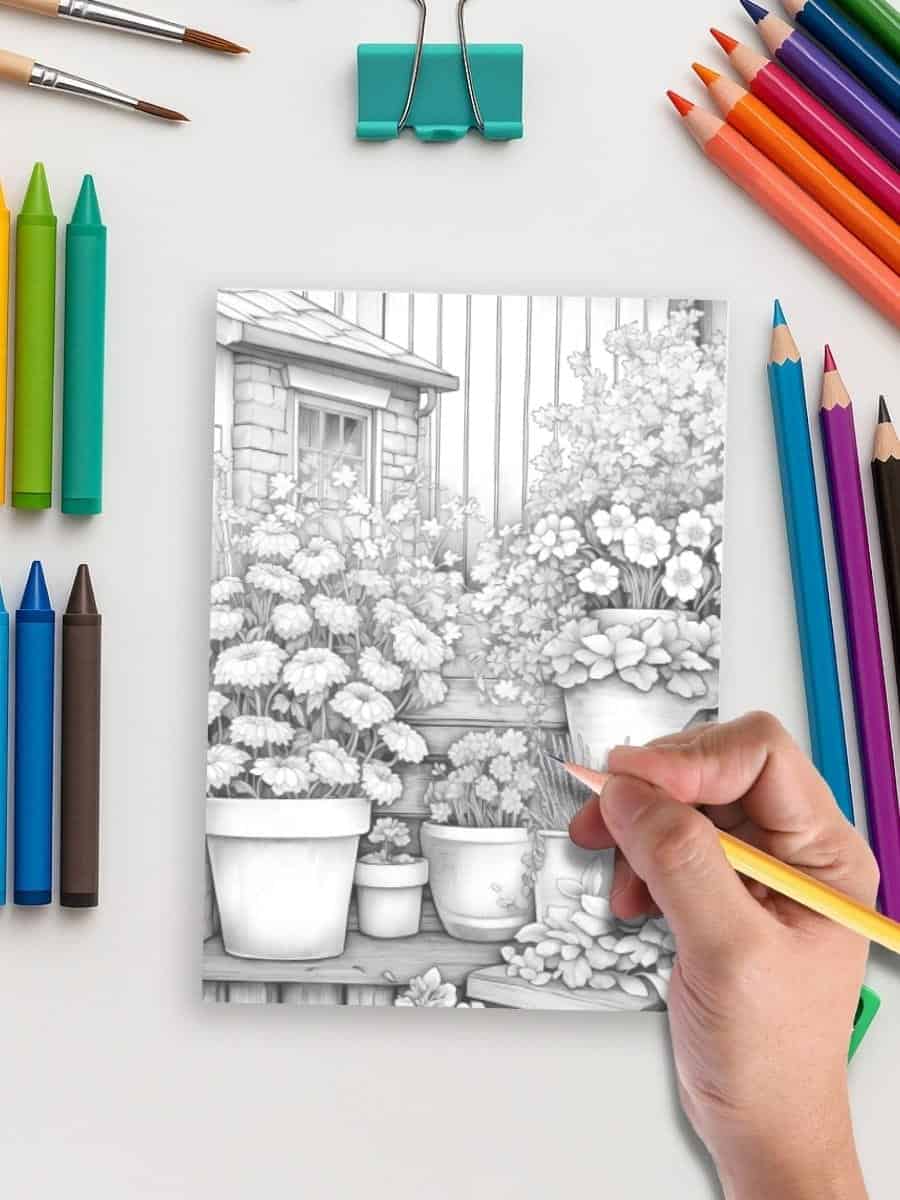 A massive collection of 315 flower garden coloring pages in a variety of beautiful artistic styles.