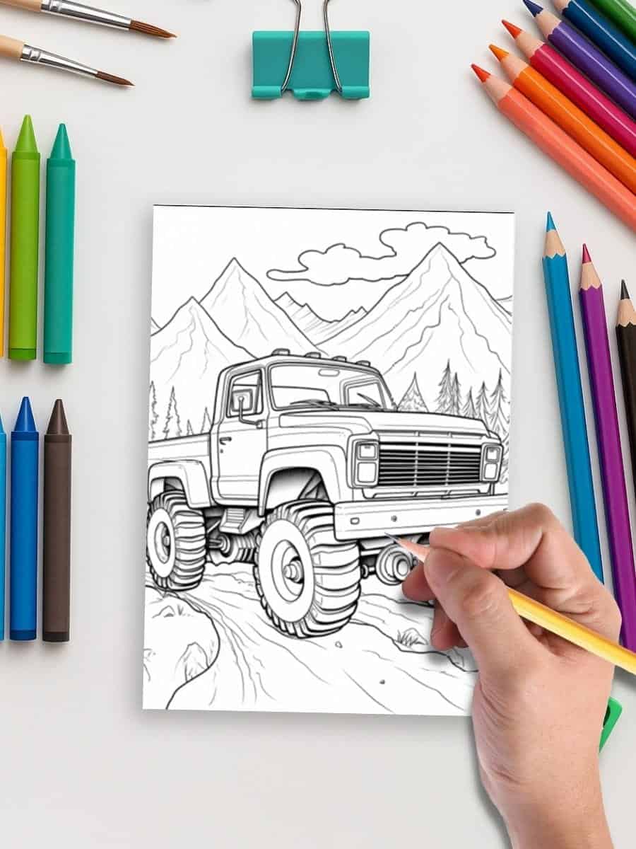"Truck Power – 120 Monster Truck Coloring Pages" - Product Details