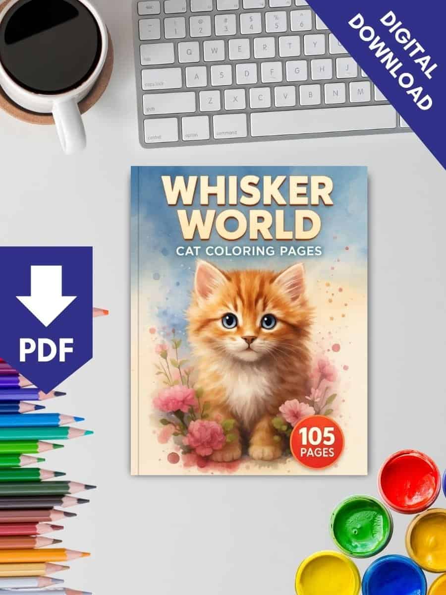 "Whisker World – 105 Cat Coloring Pages" - Product Details