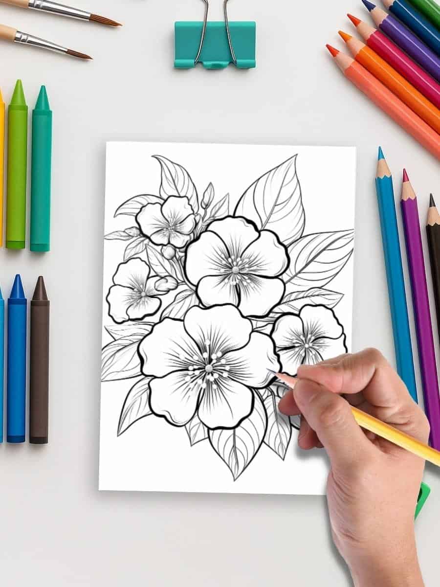 100 floral coloring pages designed for mindful relaxation and peaceful creativity.